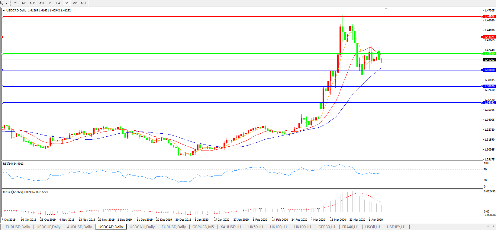 美元兑加元USDCAD 日线图: