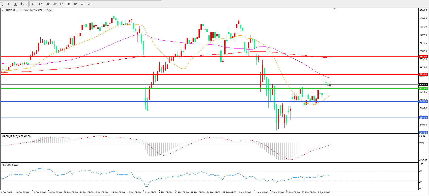 沪深300  CHINA 300   4小时图