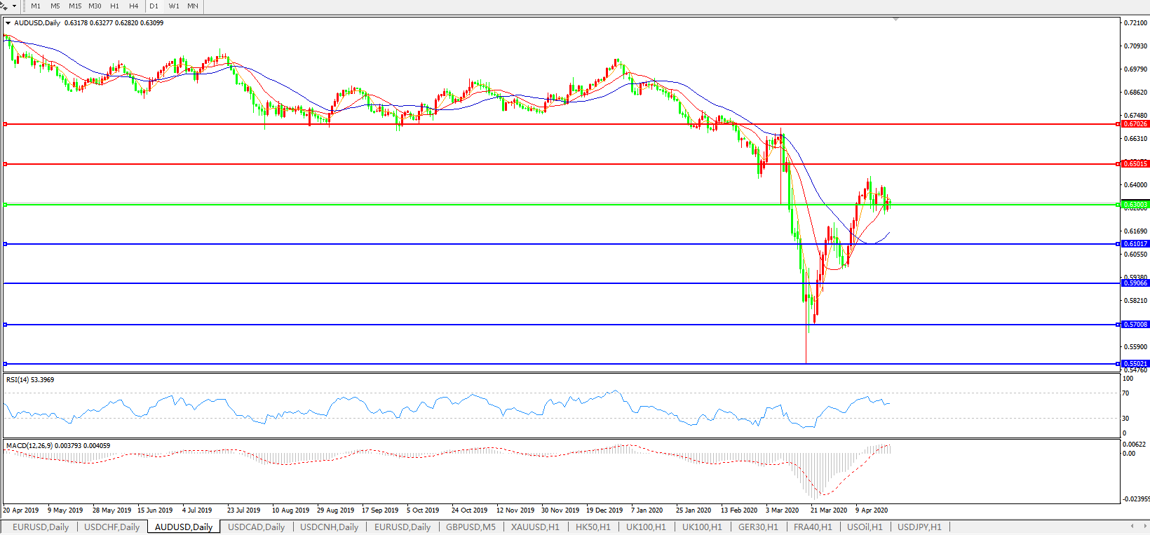 澳元兑美元AUDUSD    日线图: