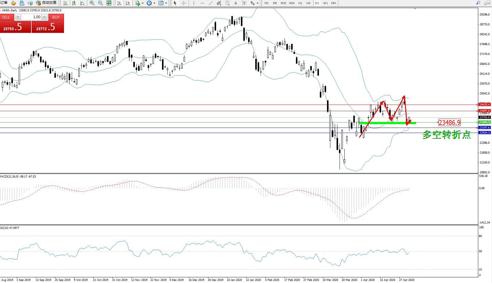 恒指HK50 ——日K线图显示:
