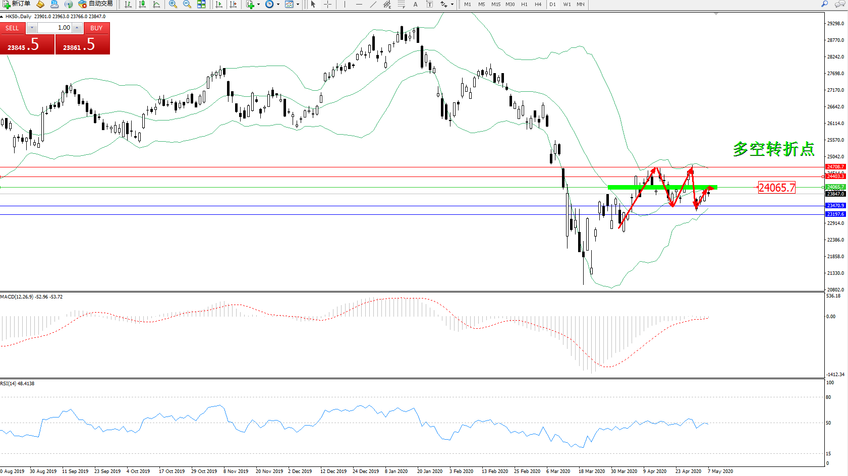 恒指HK50 ——日K线图显示: