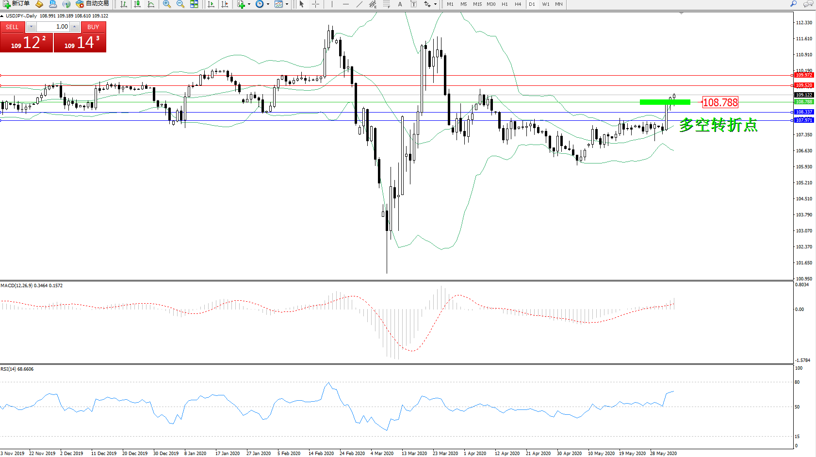 交易策略:108.788上方看涨,目标109.520109.972