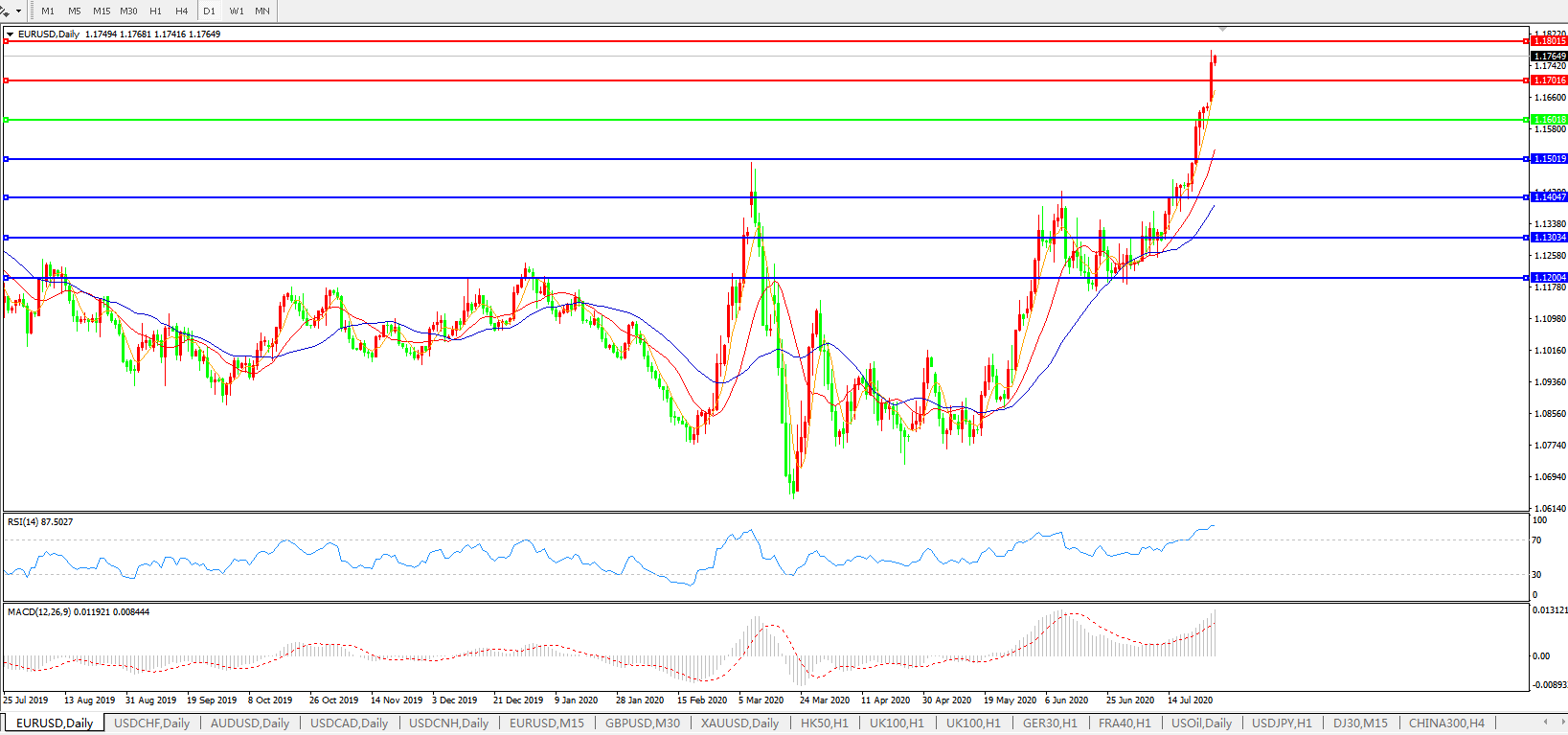 欧元兑美元EURUSD 日线图: