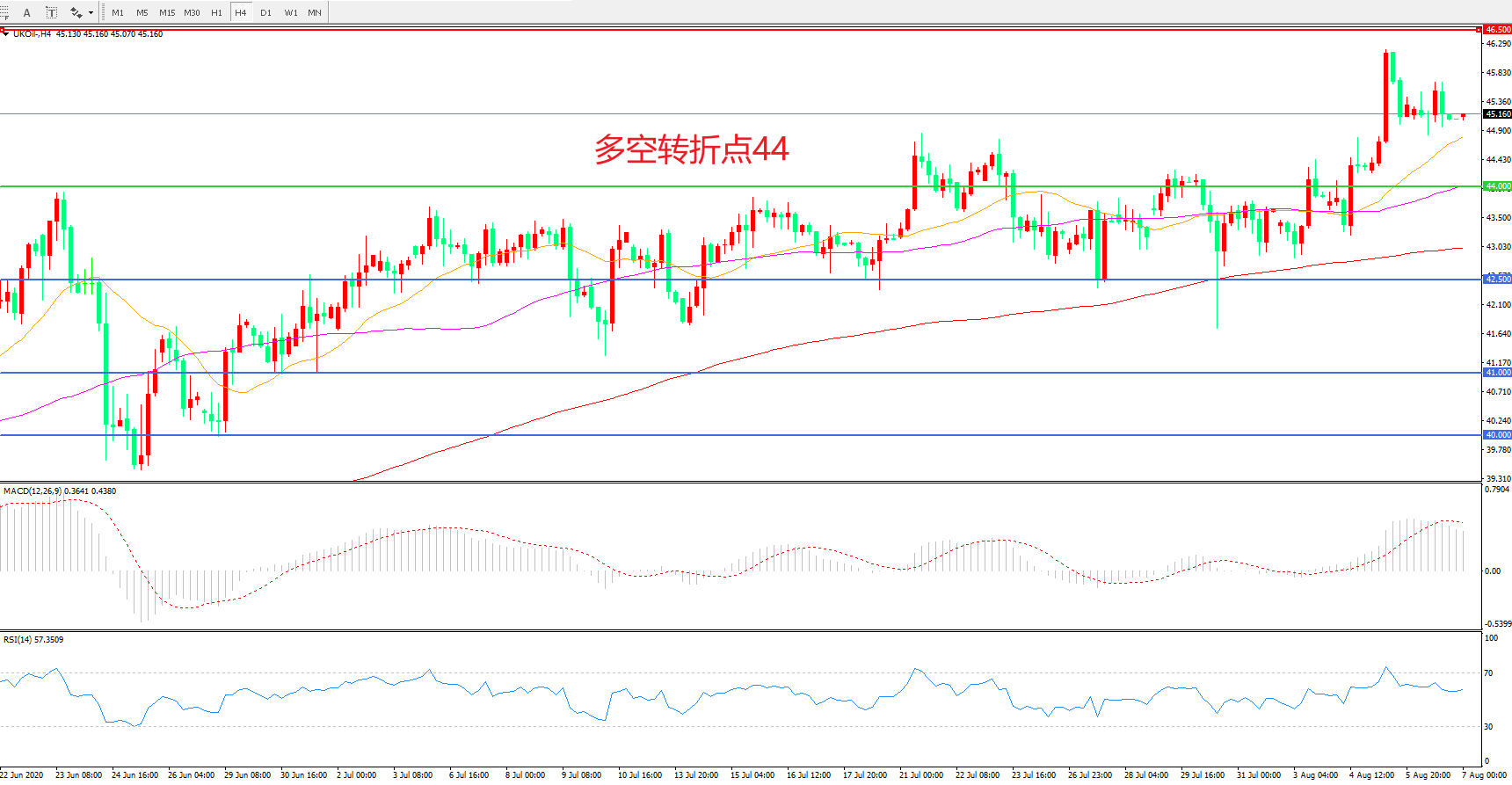 交易策略:  在44.00之上看涨,目标46.50      49.00