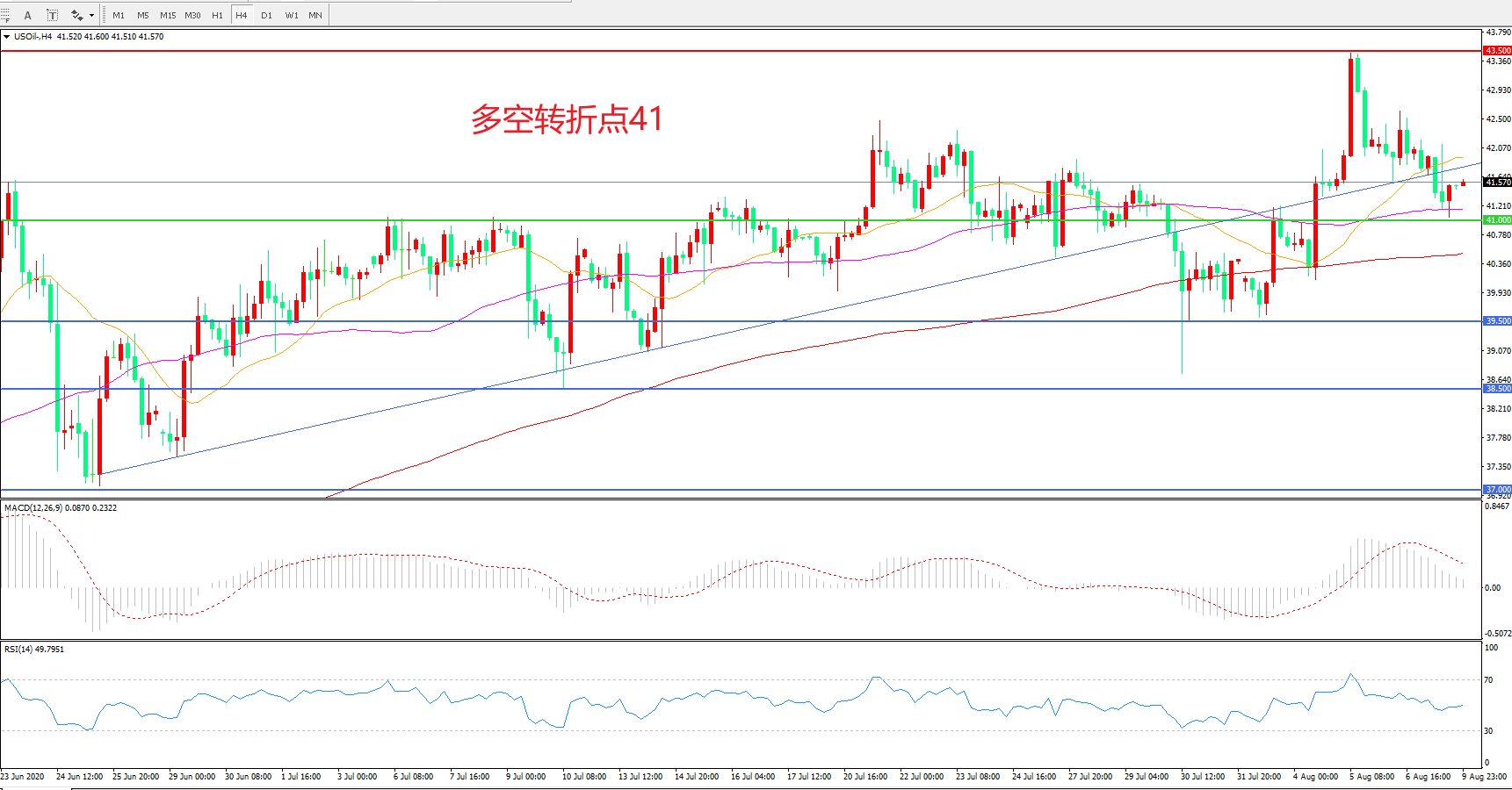 交易策略:在41.00之上看涨,目标43.50         46.00