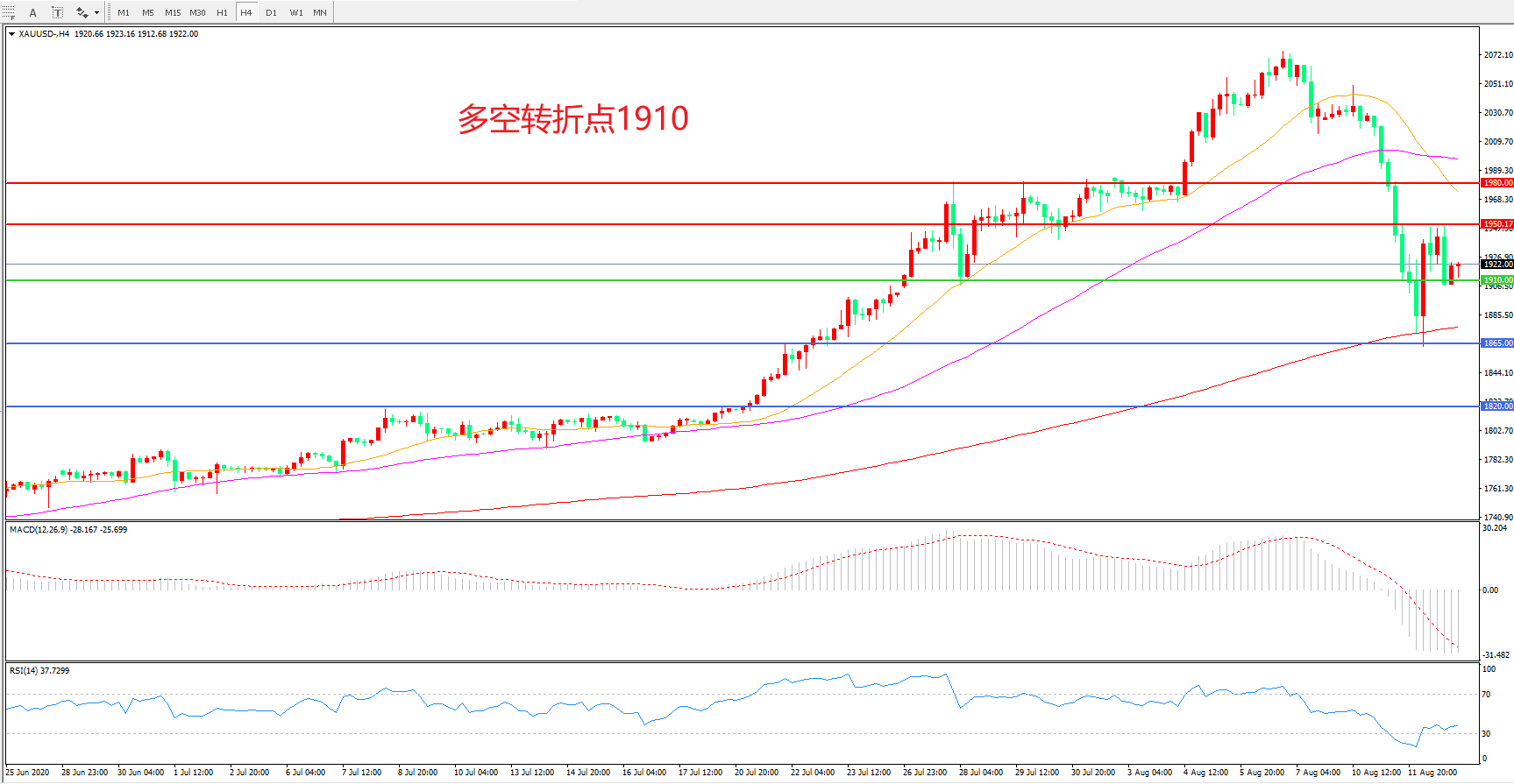 多空转折点:1910.00
