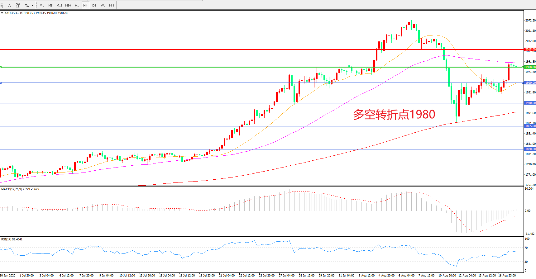 多空转折点:1950.00