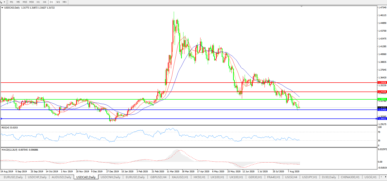 美元兑加元USDCAD    日线图: