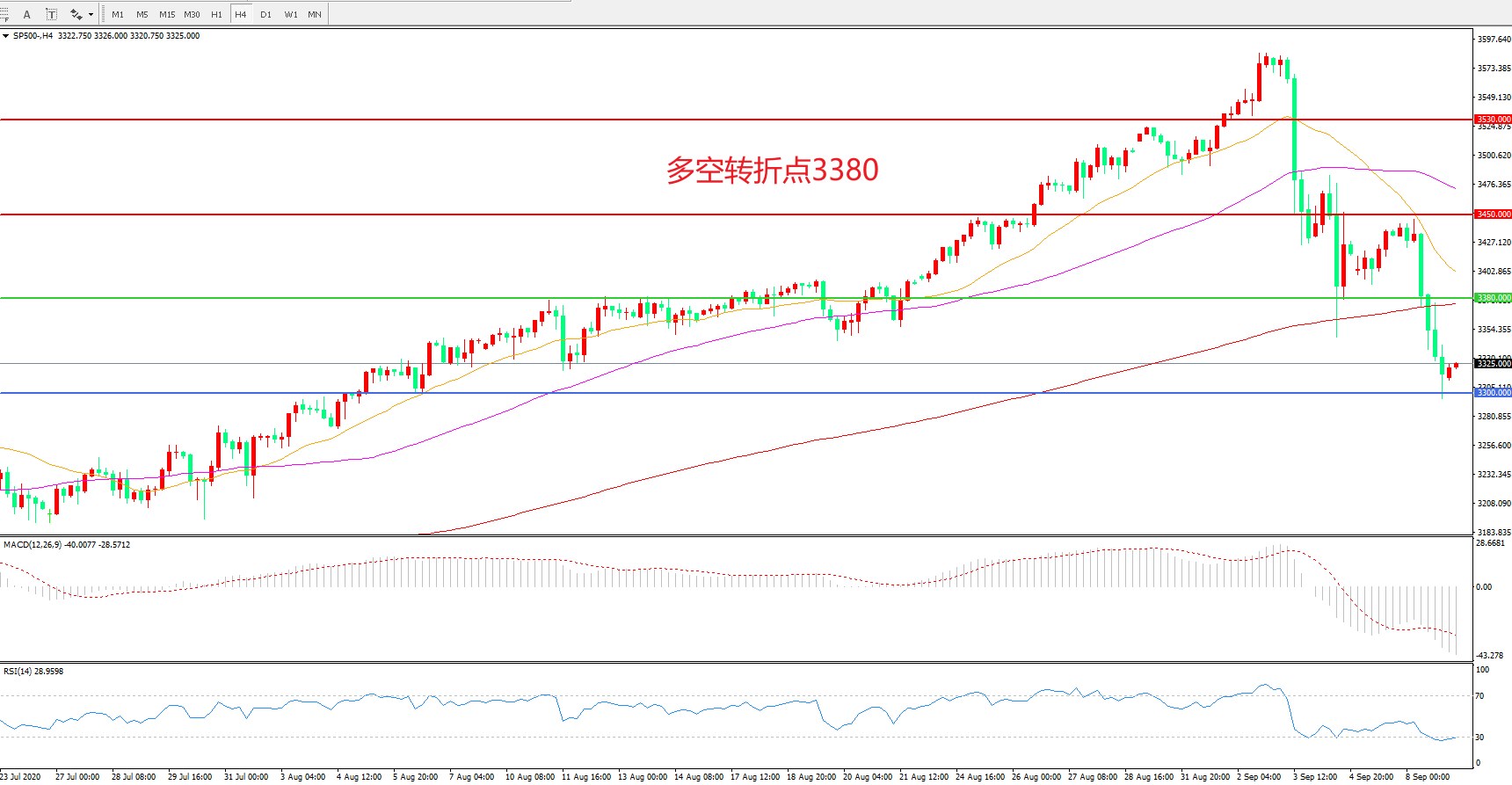 周二(9月8日),特朗普的讲话加剧了市场对地缘政治因素的担忧,市场对大型科技股的抛售持续,苹果跌超4%,亚马逊、谷歌、facebook跌超2%,标普500受到重挫,大跌近4%后,收报3316.25点。