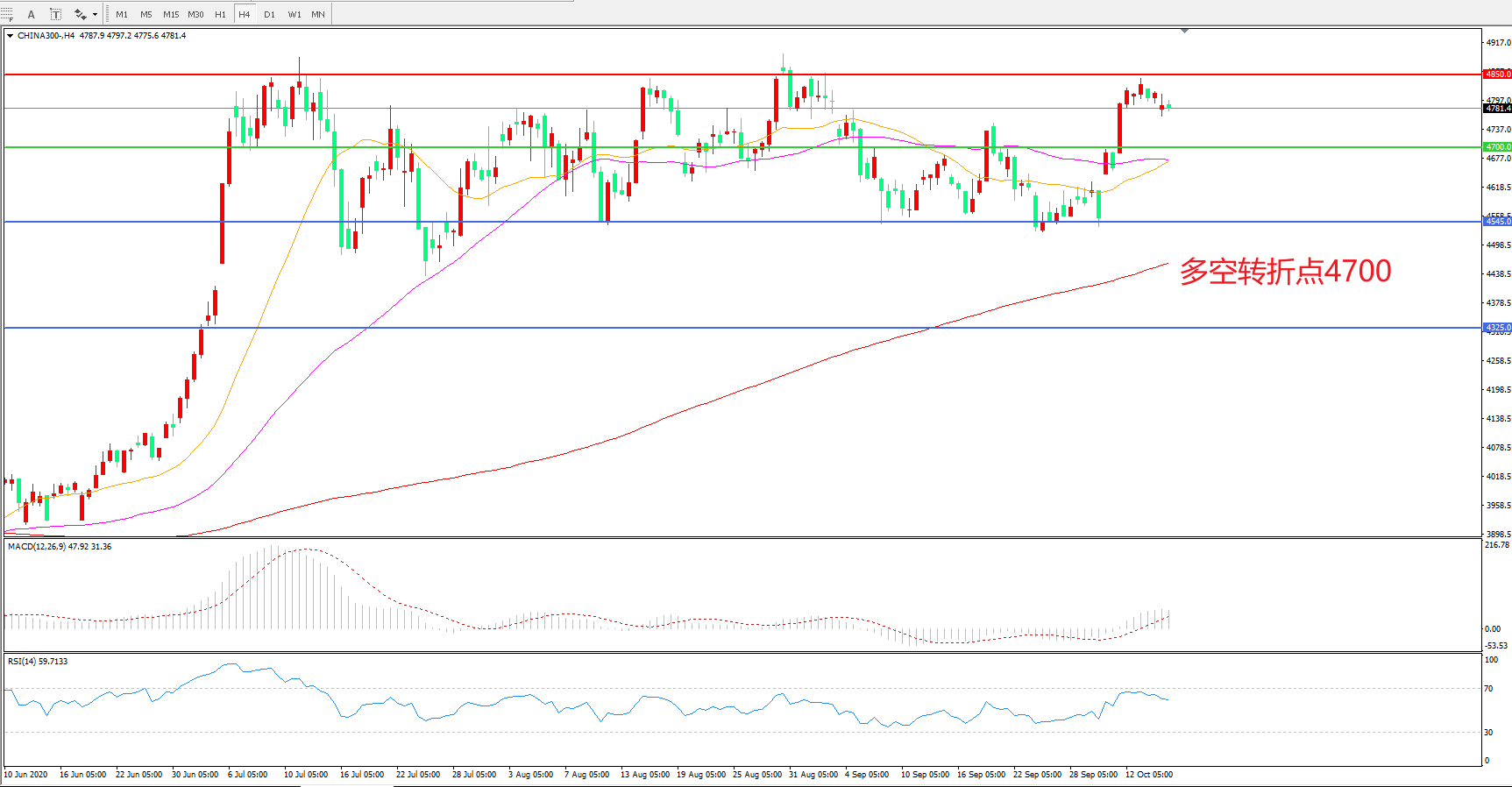 多空转折点:4700.00