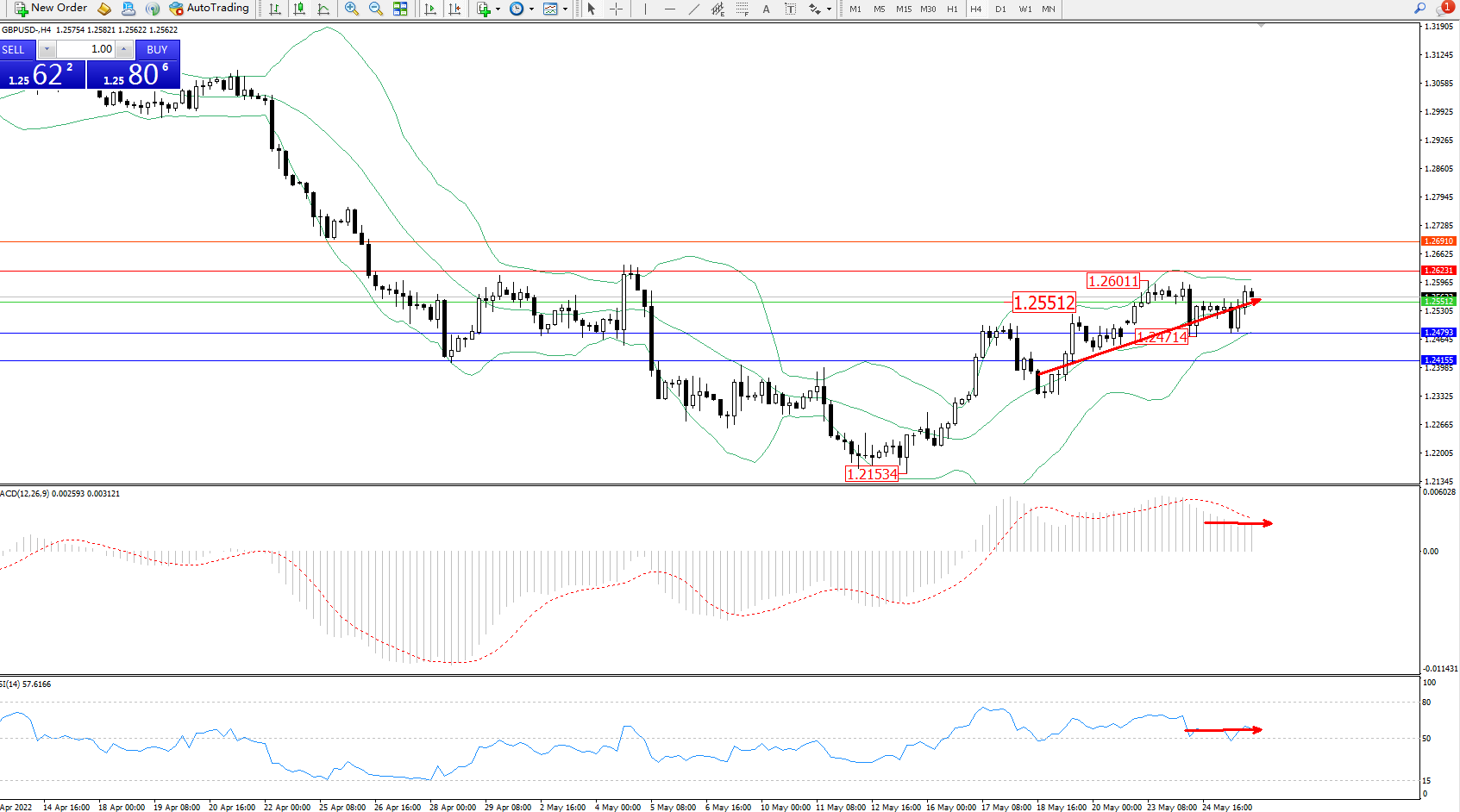 交易策略:1.25512上方看涨,目标1.26231、1.26910