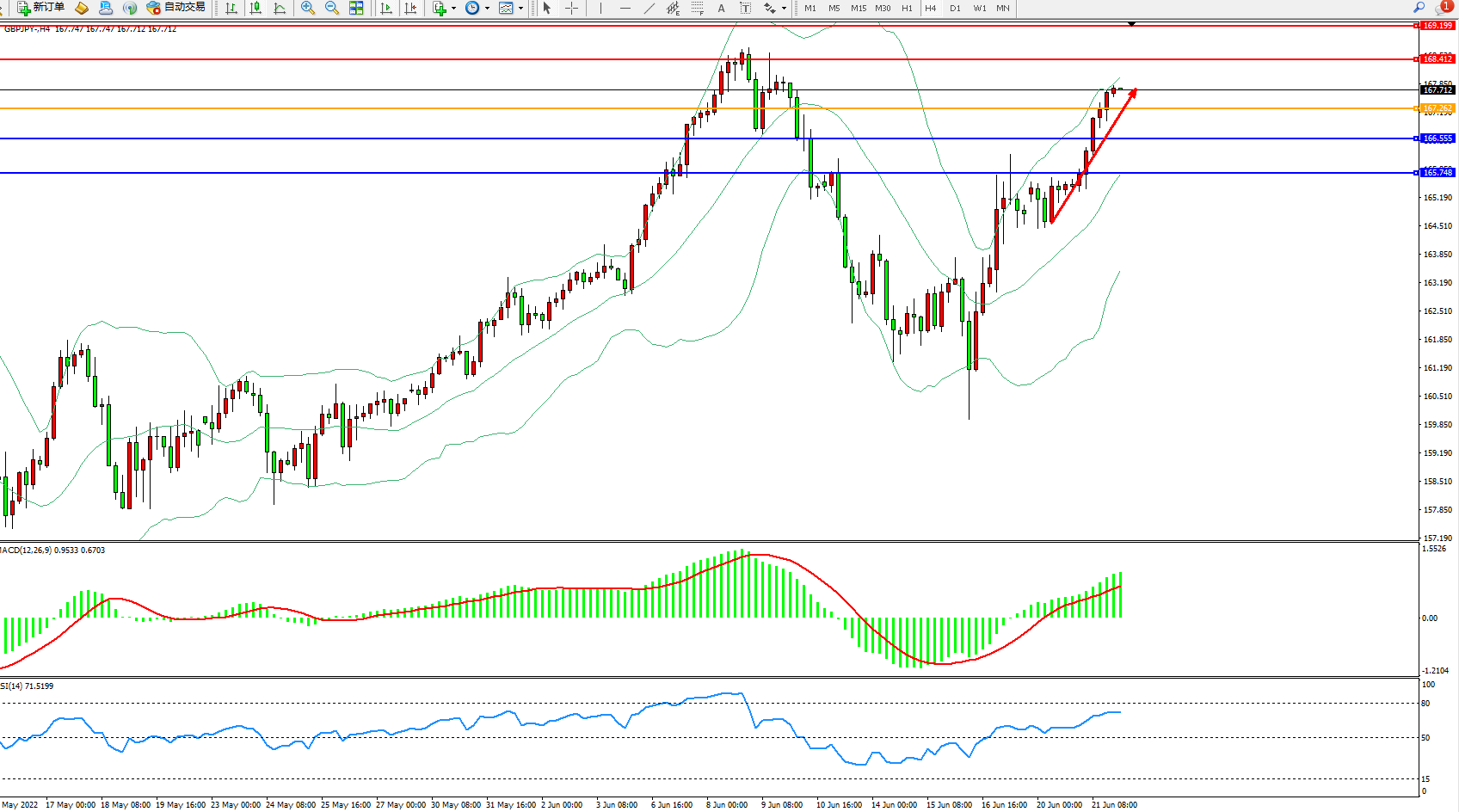 交易策略:167.262上方看涨,目标168.412、169.199