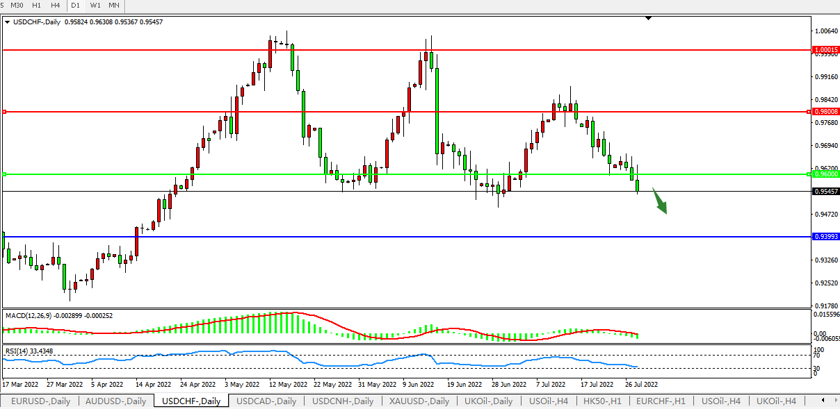 USDCHF:0.9600成为压制