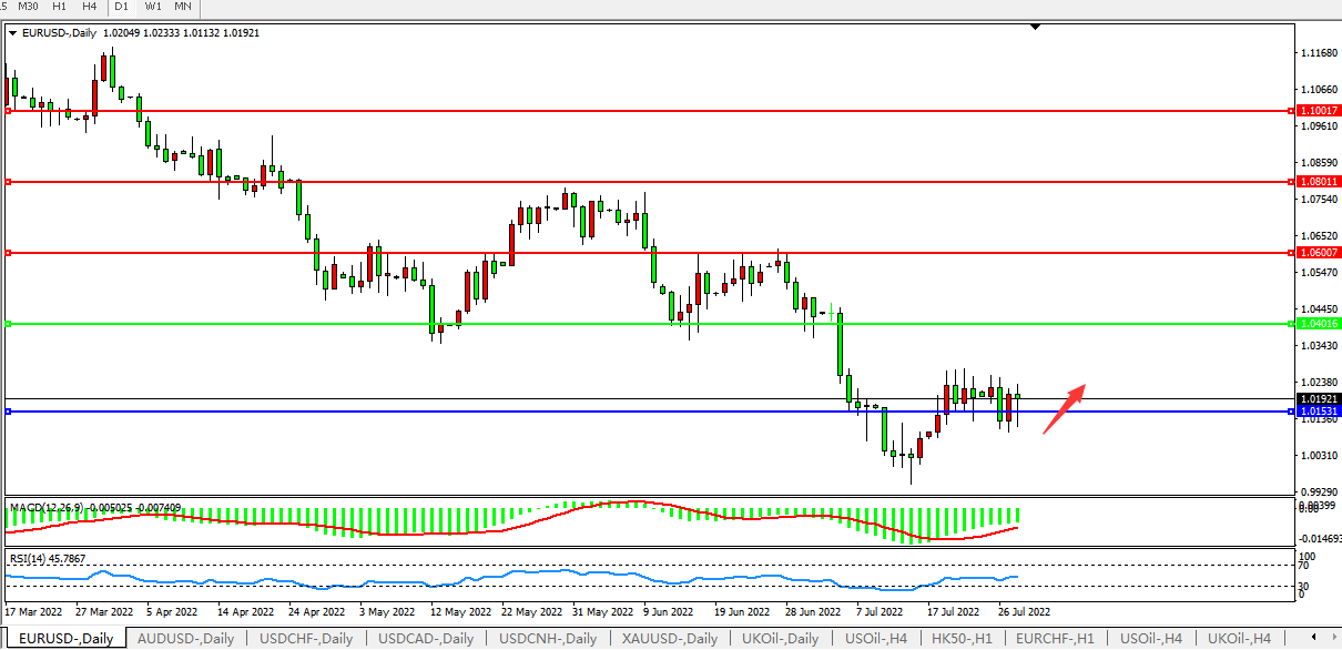 交易策略:1.0400下方看跌,目标1.0150、1.0000