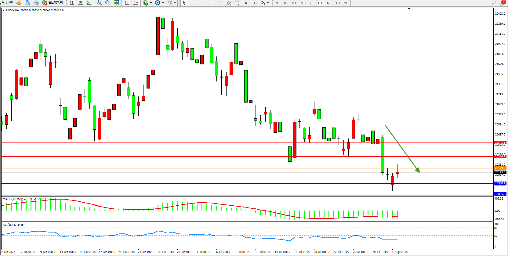恒指HK50 4小时图