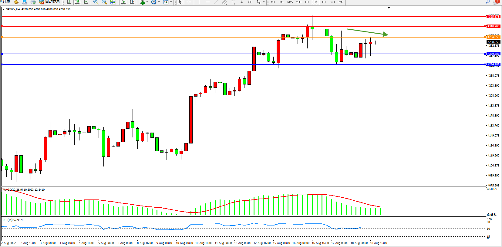 标普SP500——4小时K线图显示: