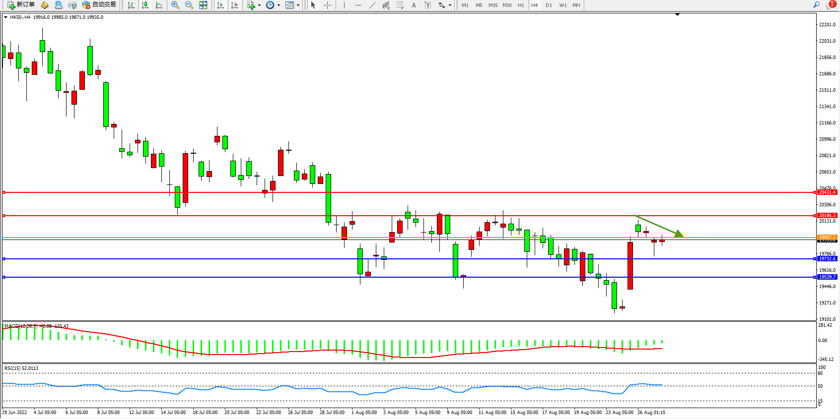 恒指HK50 4小时图