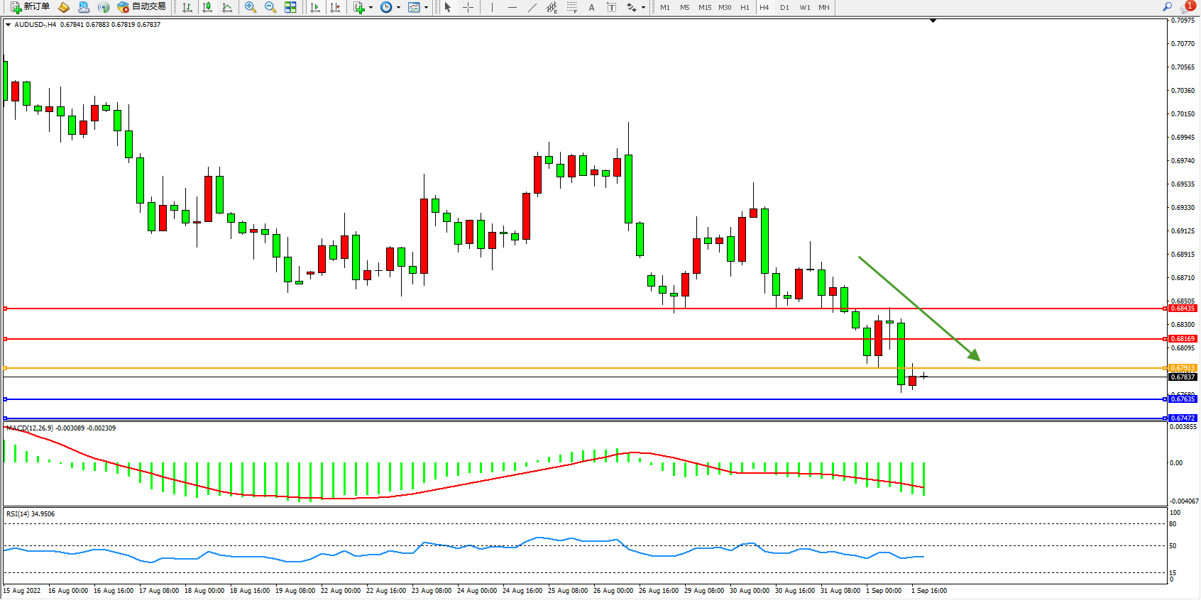 交易策略:0.67913下方看跌,目标0.67635、0.67472