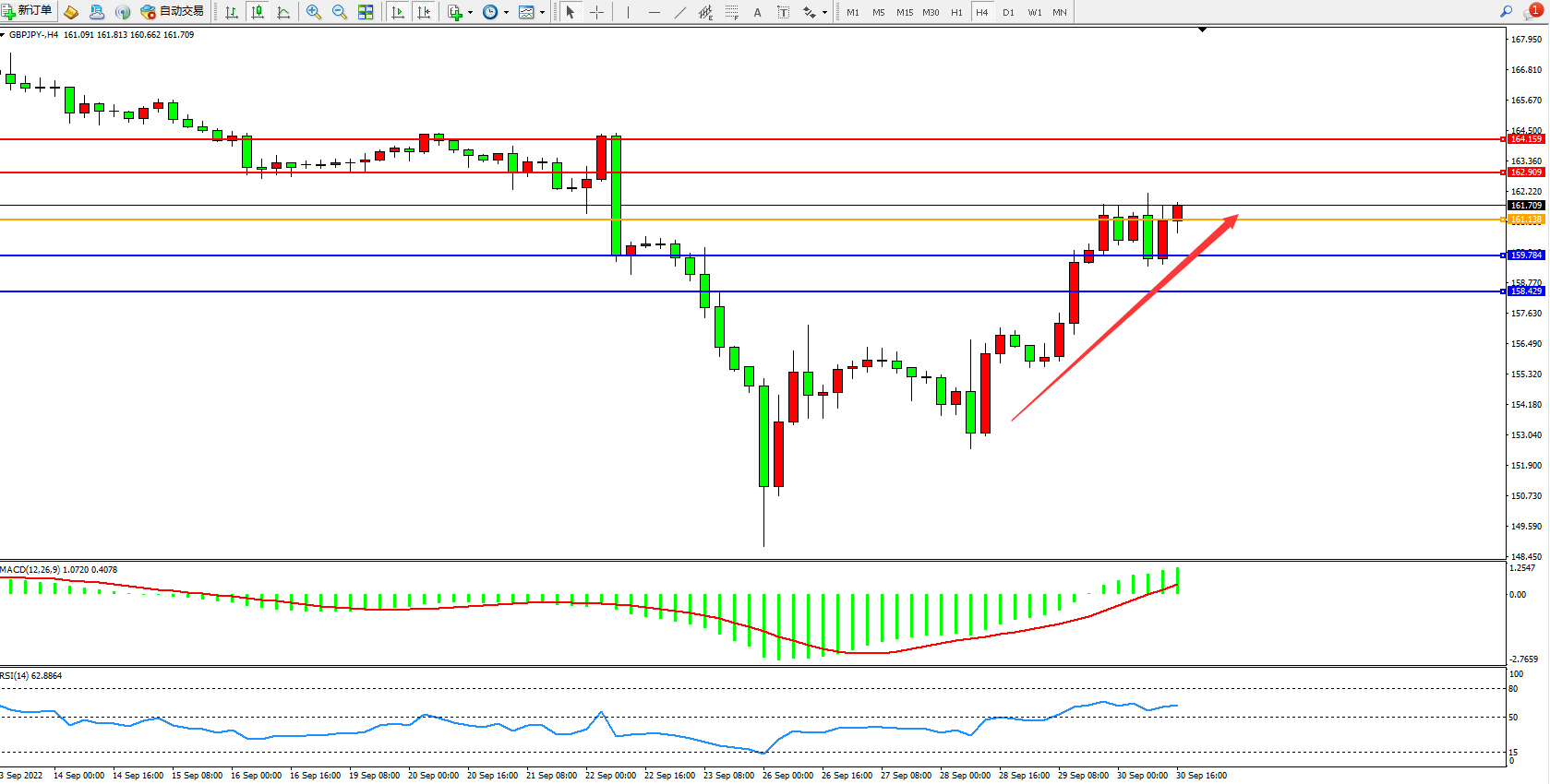 交易策略:161.138上方看涨,目标162.909、164.159