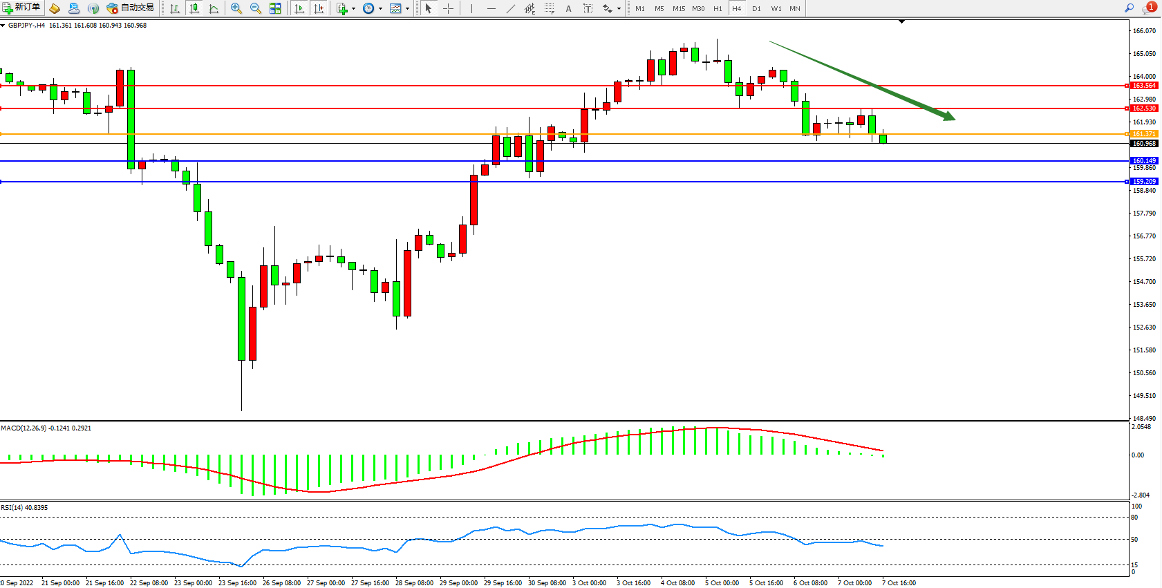 交易策略:161.371下方看跌,目标160.149、159.209
