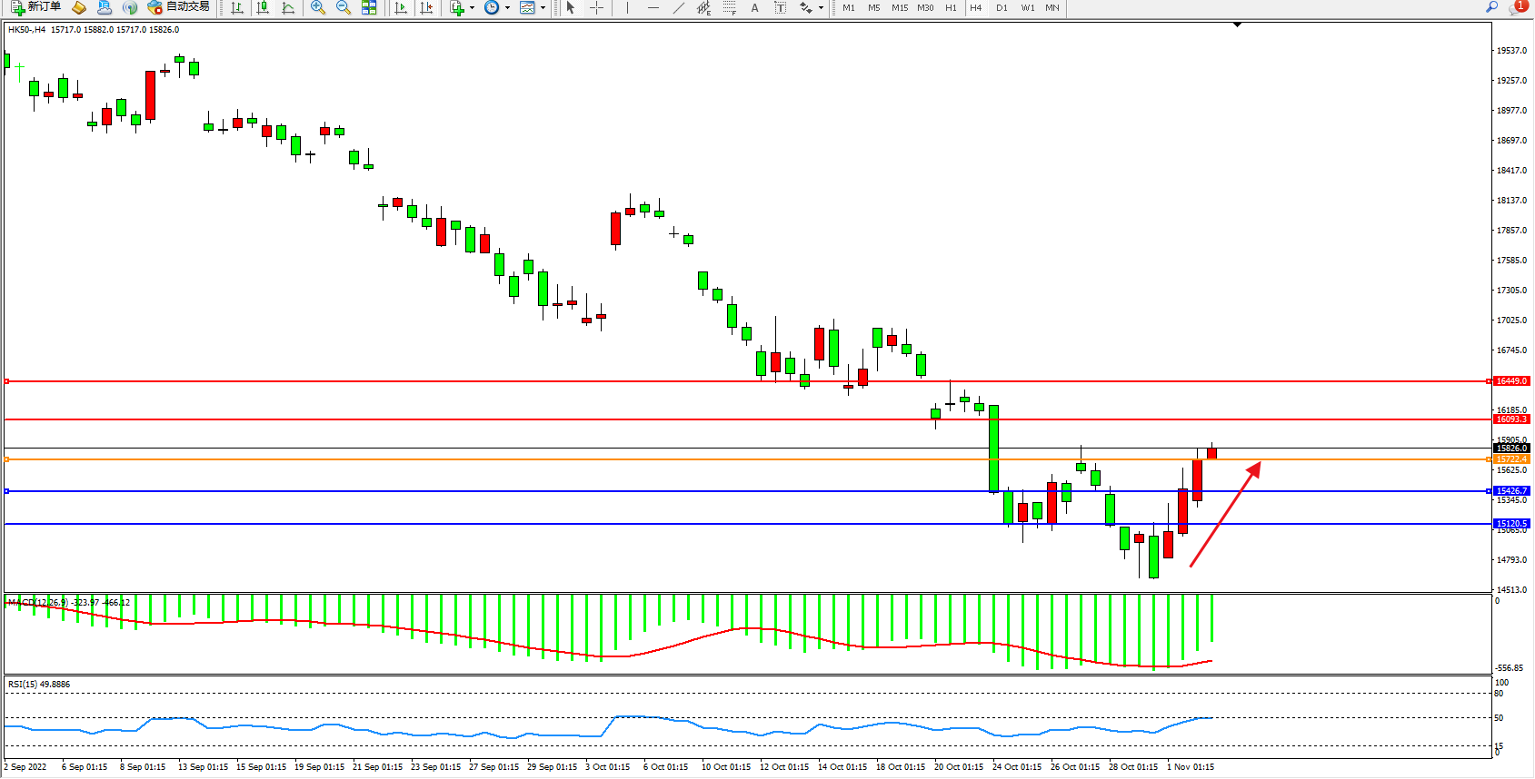 恒指HK50 4小时图