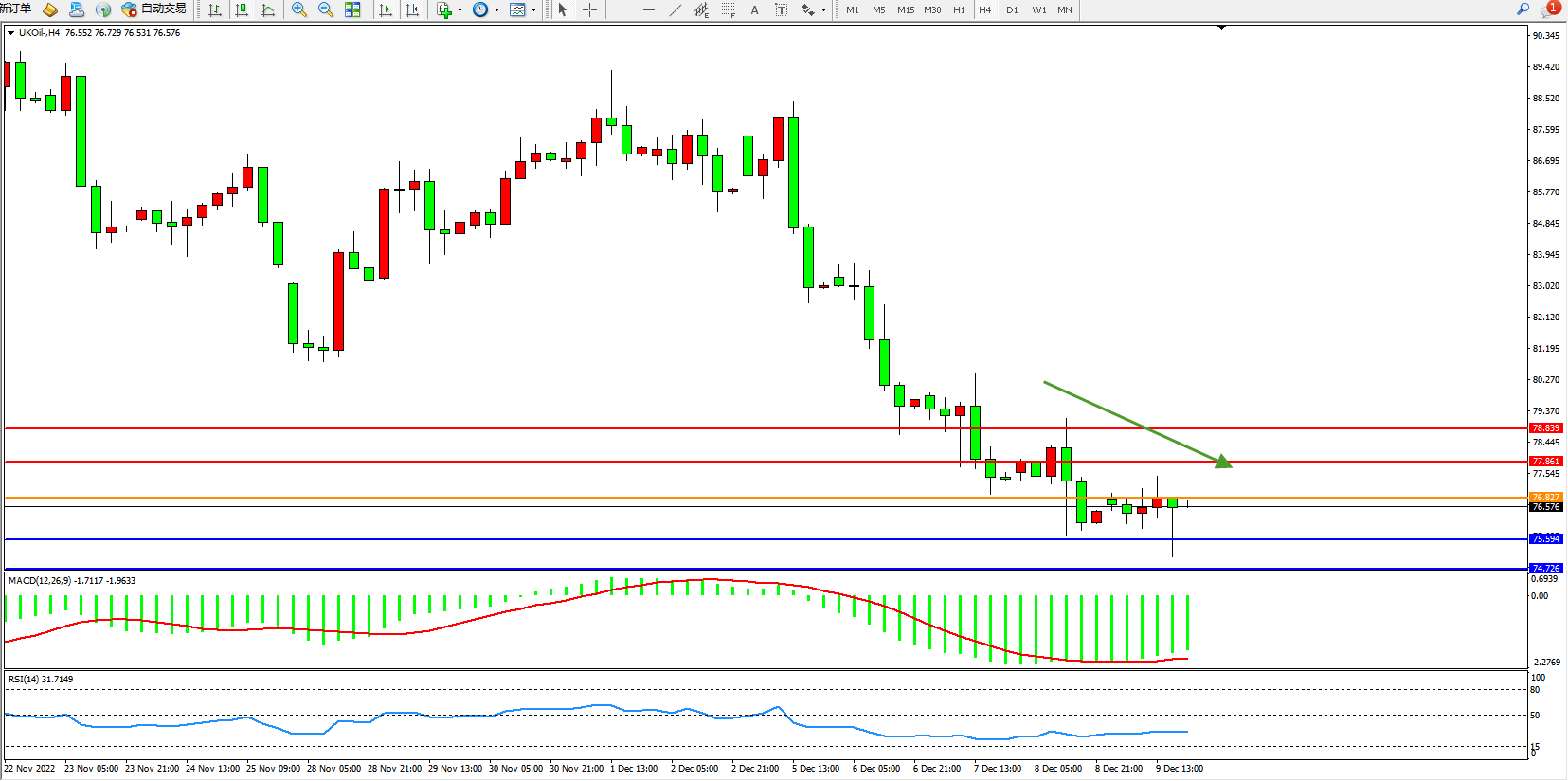 布油UKOil——4小时K线图显示: