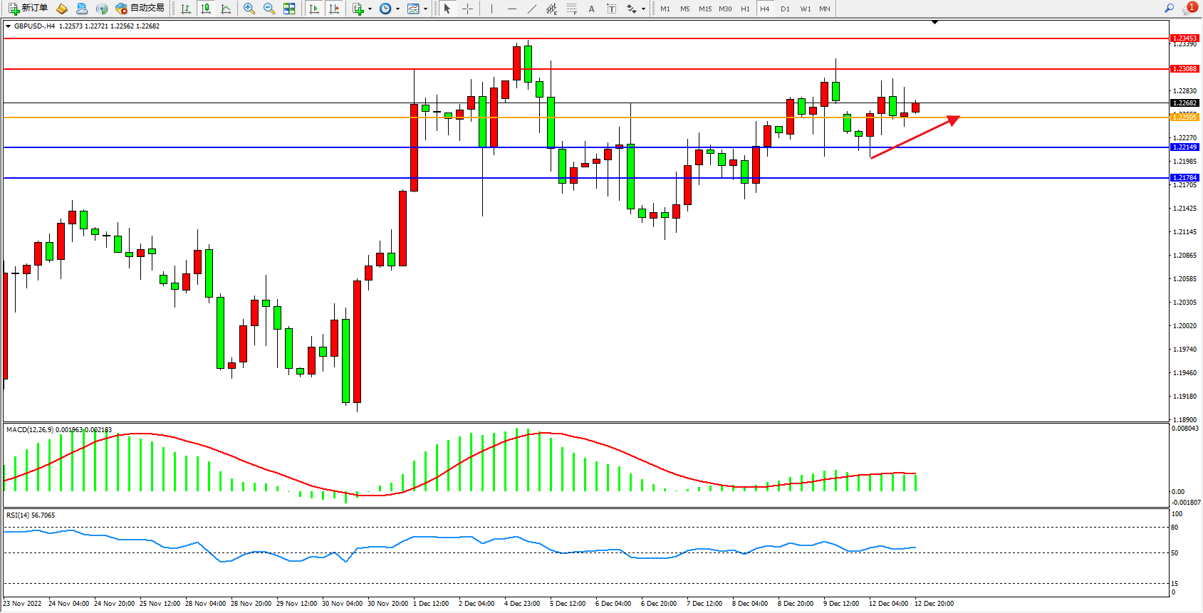 交易策略:1.22505上方看涨,目标1.23088、1.23453