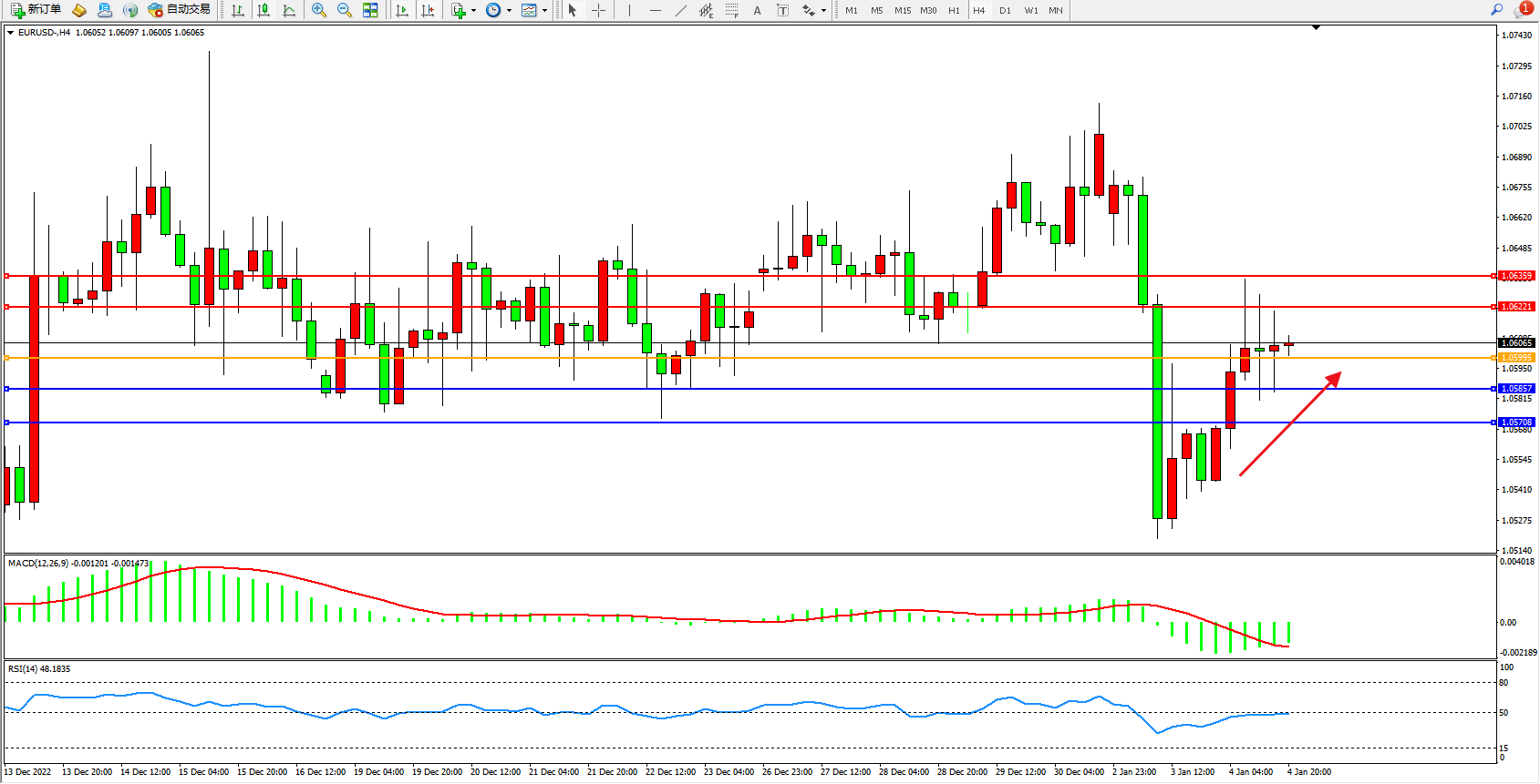 交易策略:1.05995上方看涨,目标1.06221、1.06359