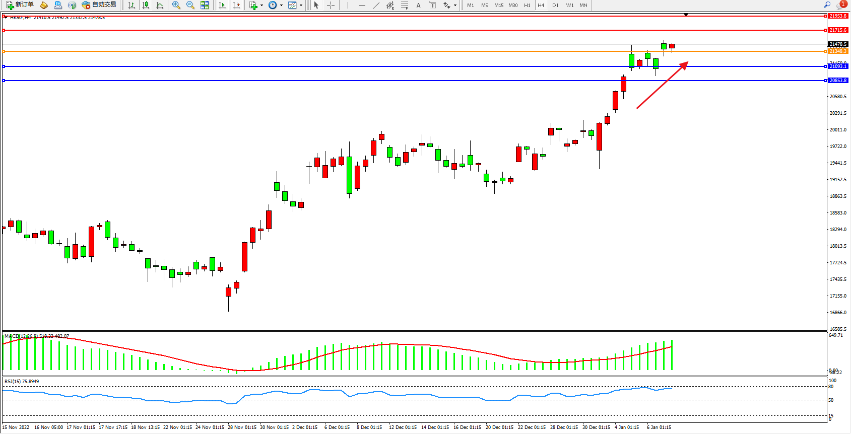 恒指HK50 4小时图