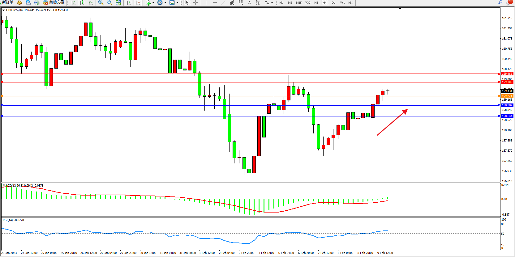 交易策略:159.271上方看涨,目标159.705、159.966