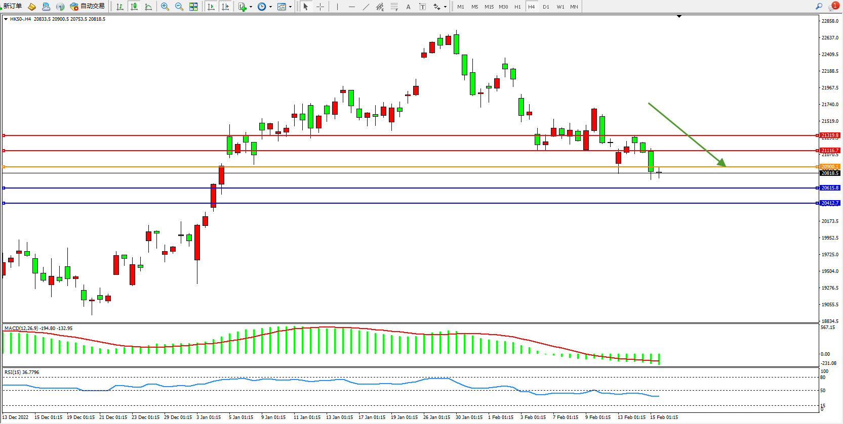 恒指HK50 4小时图