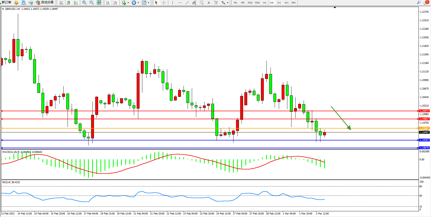 英镑美元GBPUSD ——4小时K线图显示: