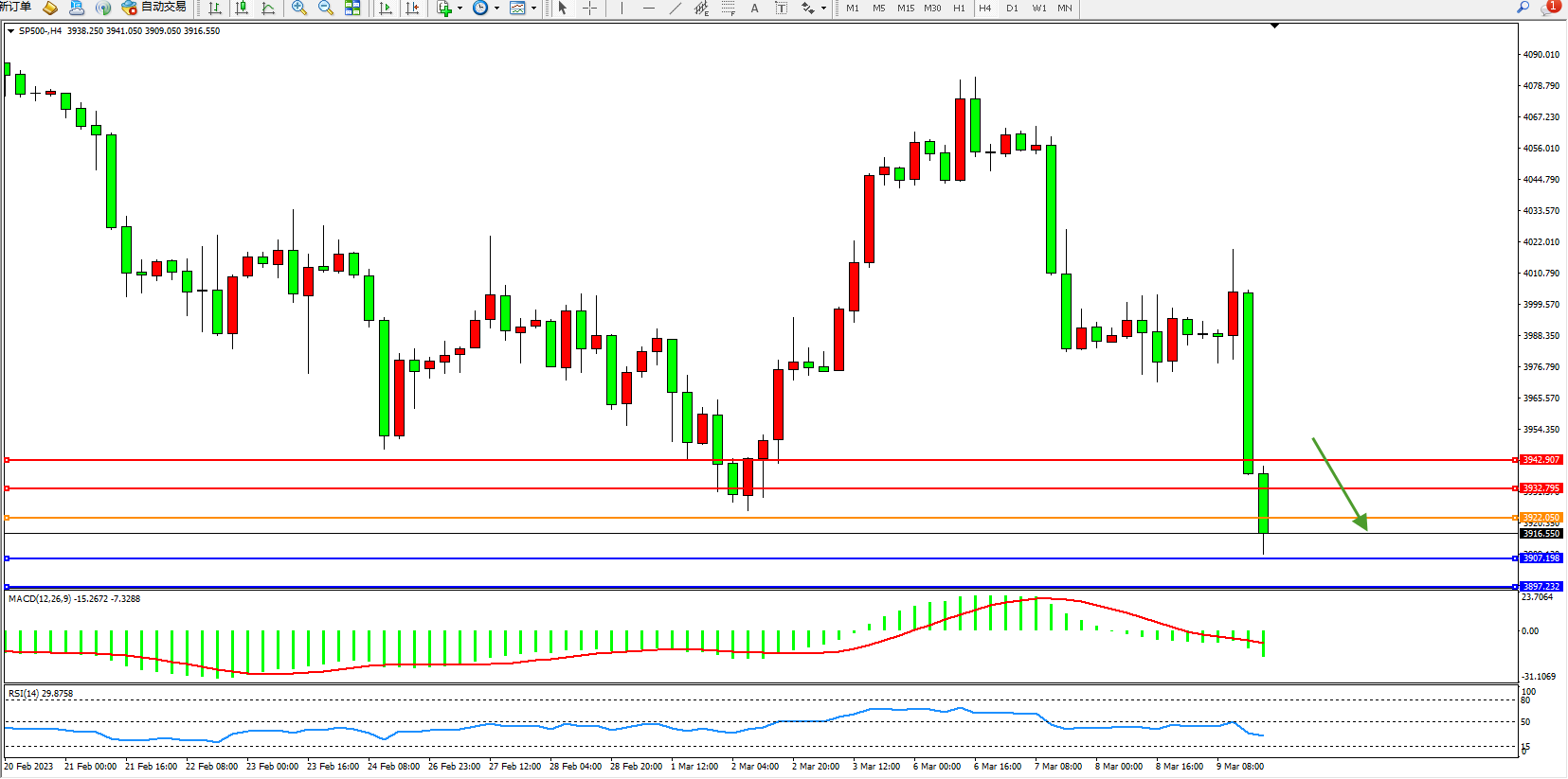 标普SP500——4小时K线图显示: