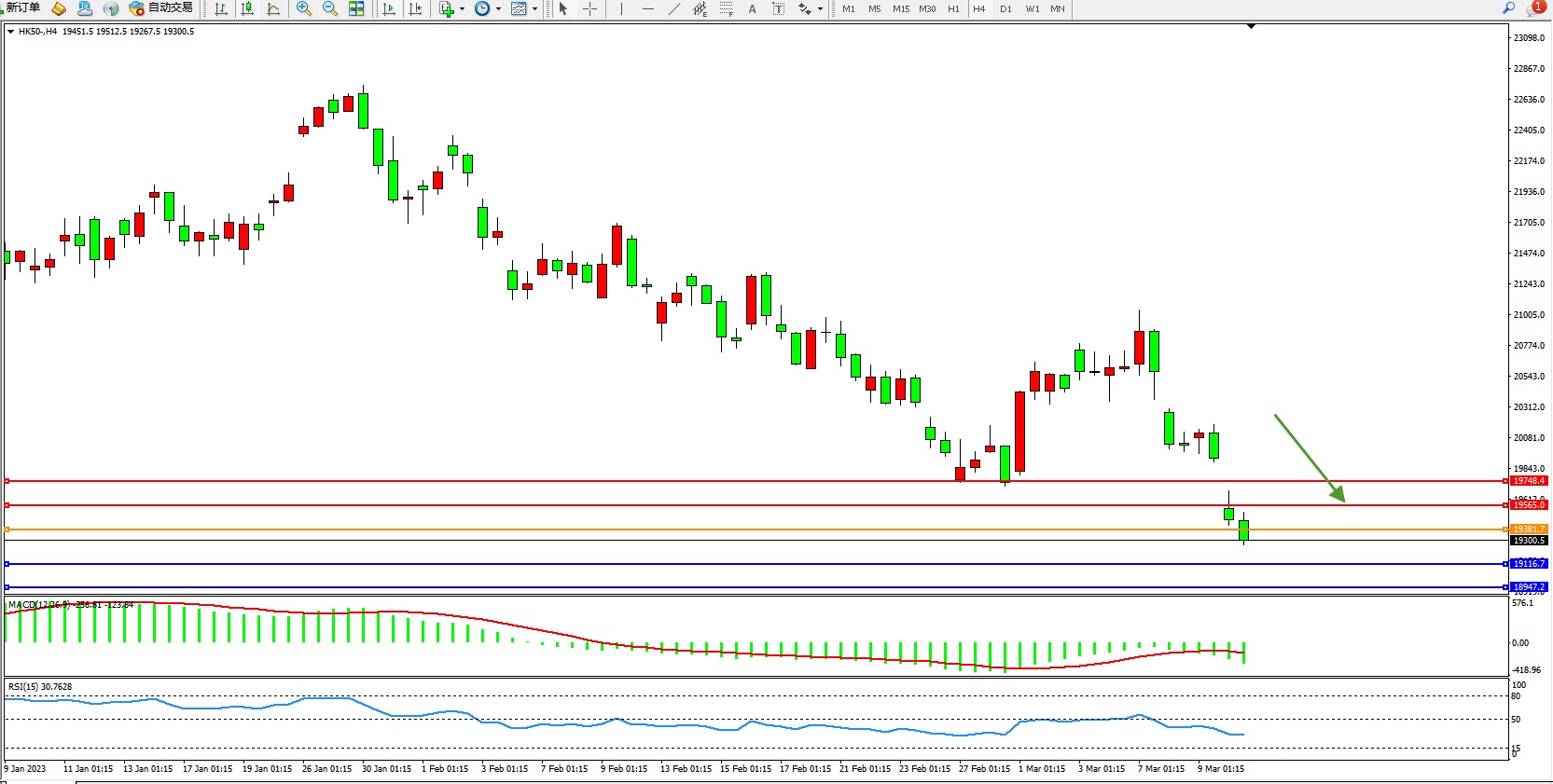 恒指HK50 4小时图
