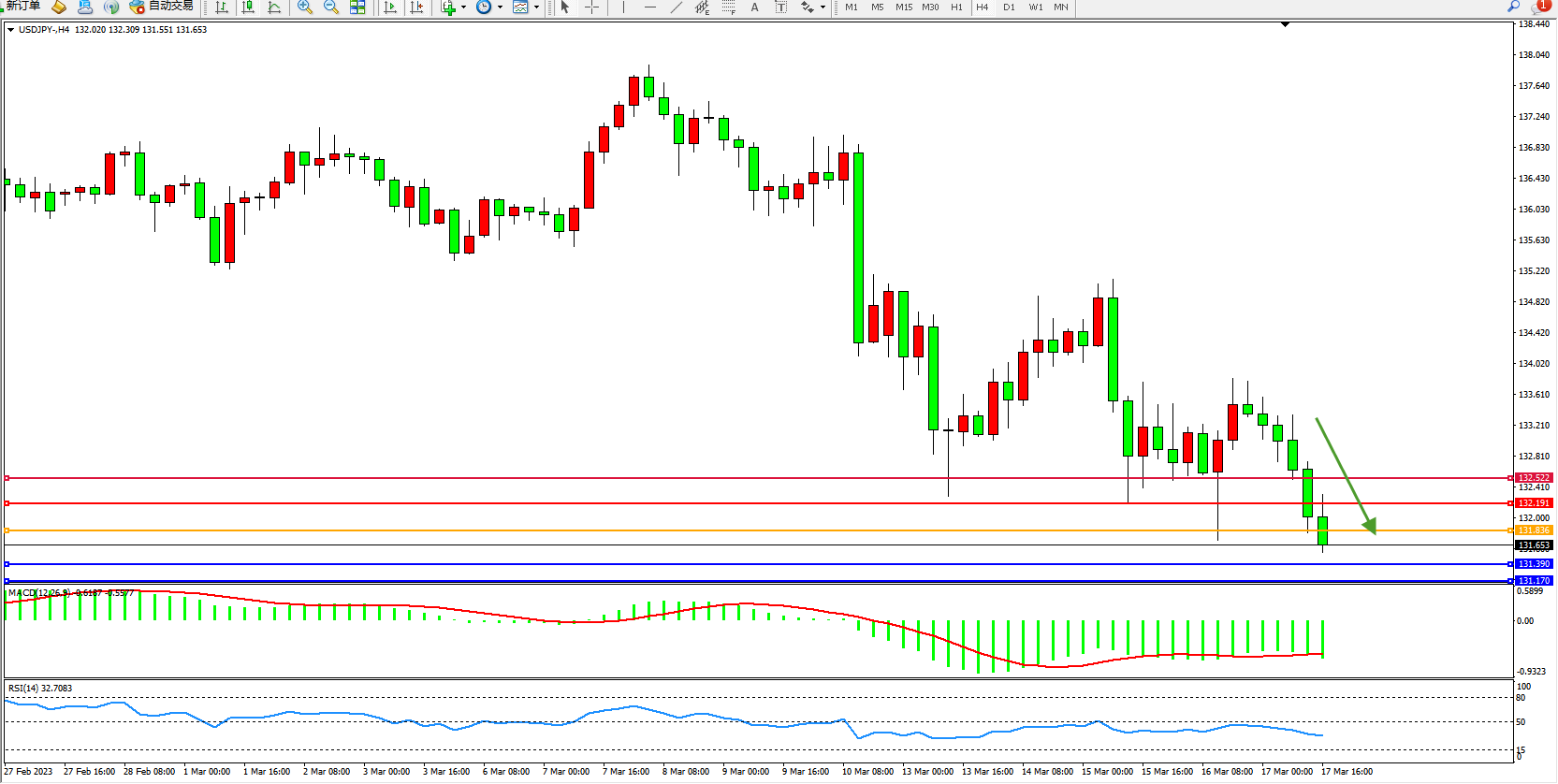 交易策略:131.836下方看跌,目标131.390  131.170