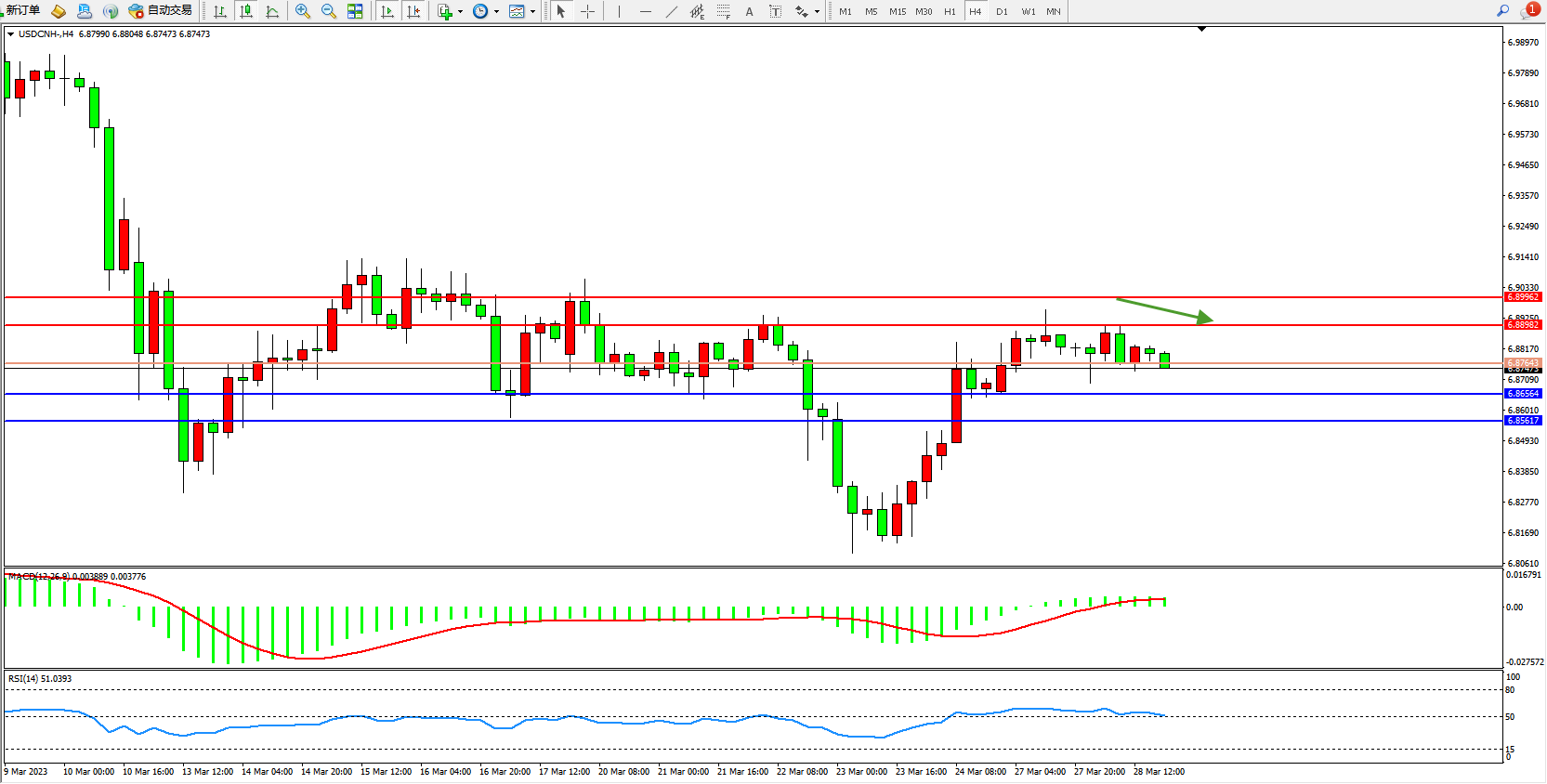 备选策略:6.87643上方看涨,目标6.88982  6.89962