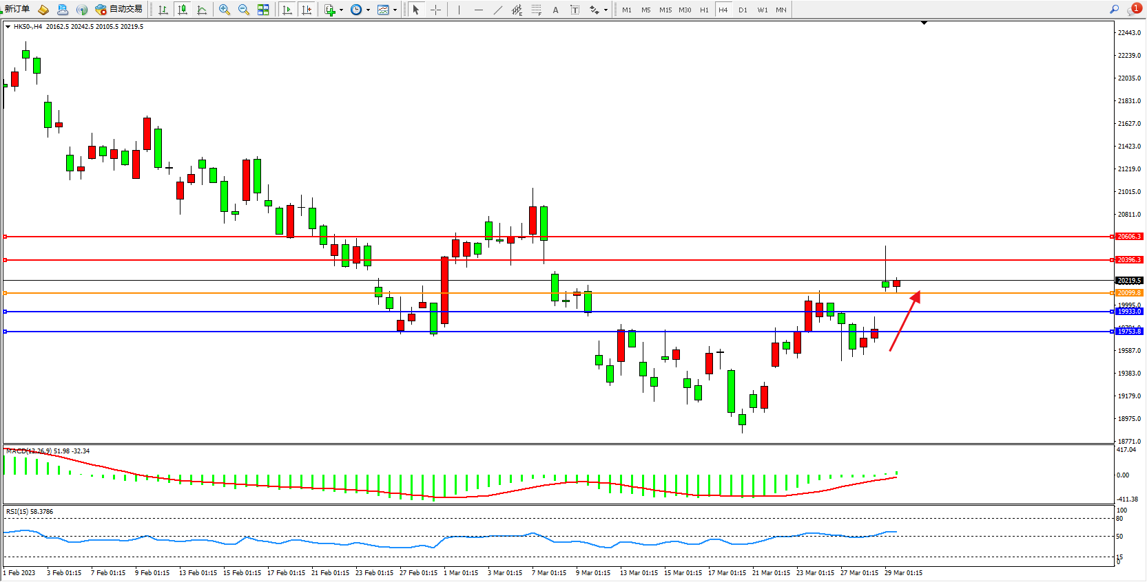 恒指HK50 4小时图