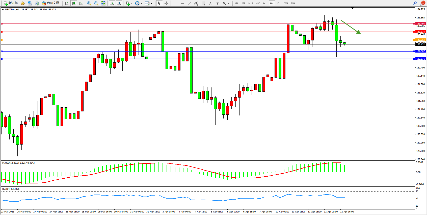 阻力位:133.514 133.766
