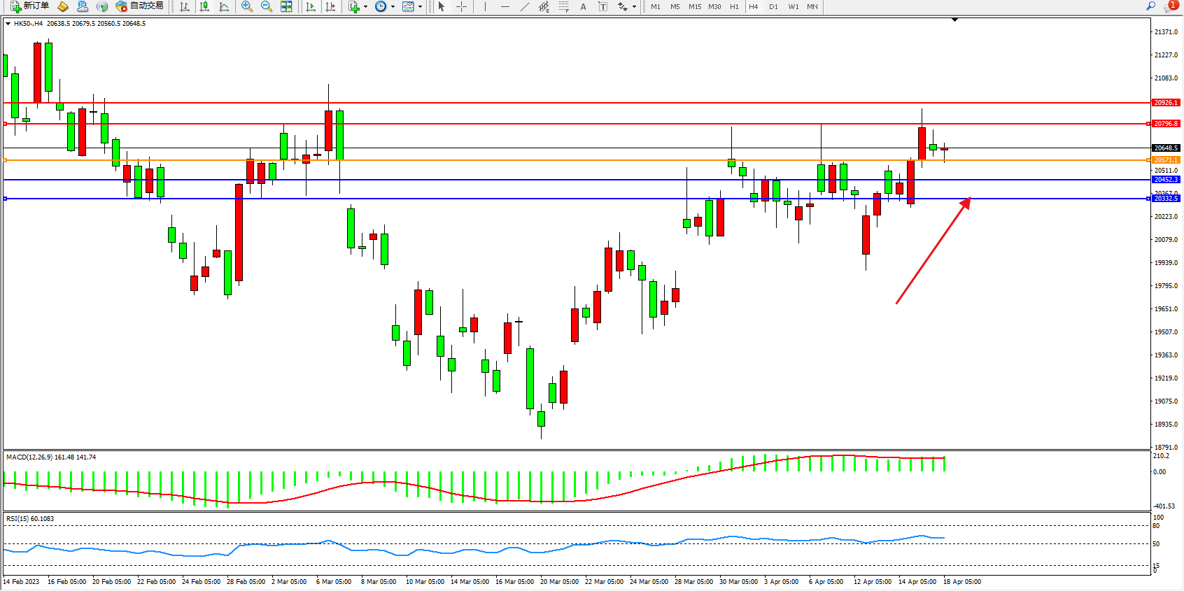 恒指HK50 4小时图