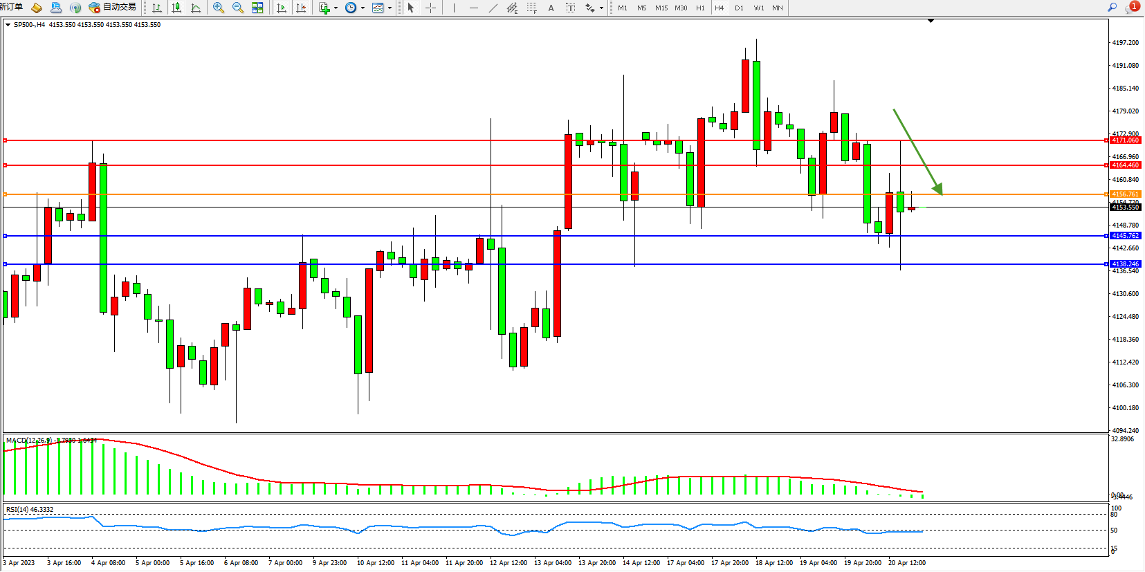 标普SP500——4小时K线图显示: