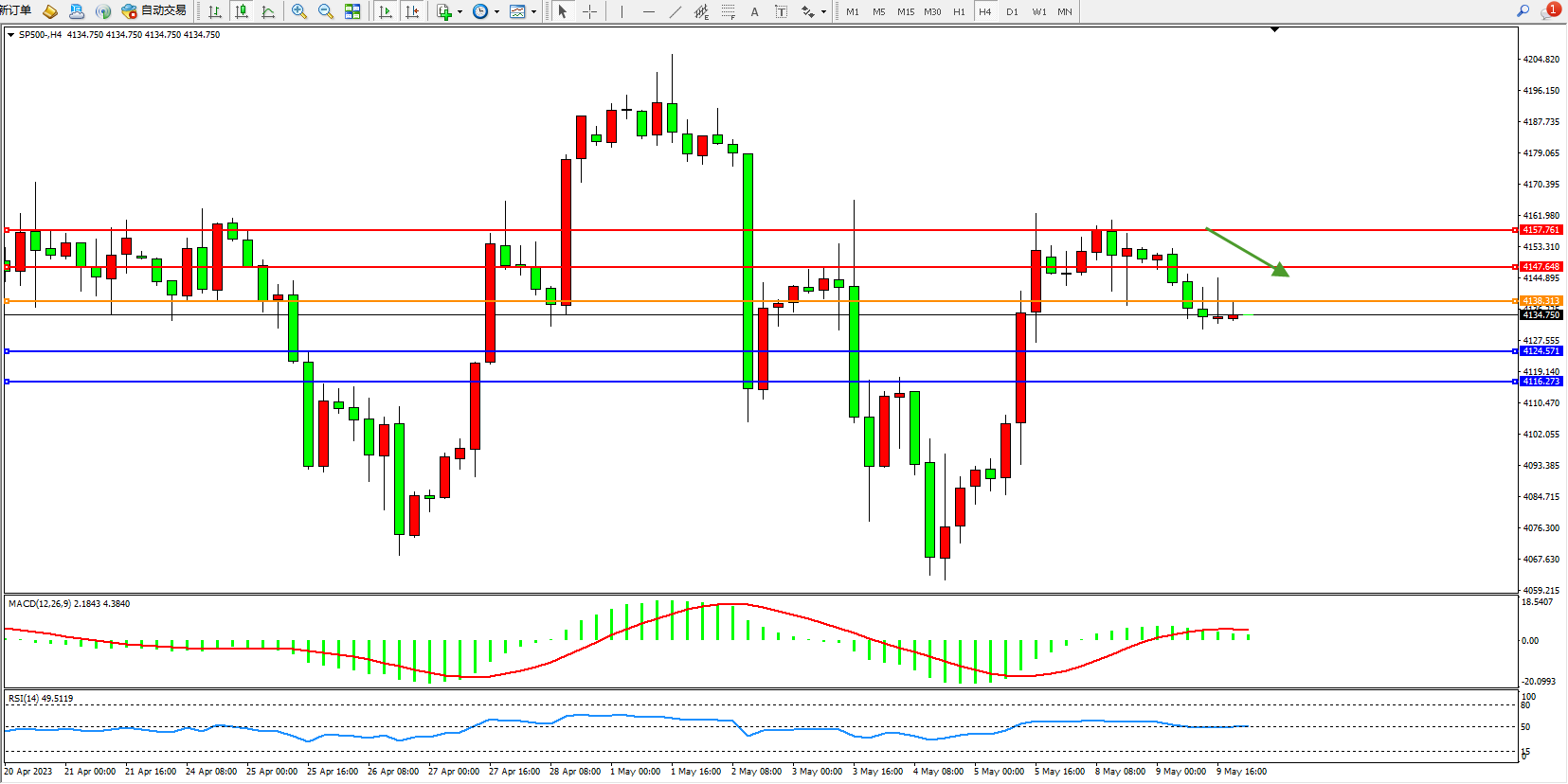 标普SP500——4小时K线图显示: