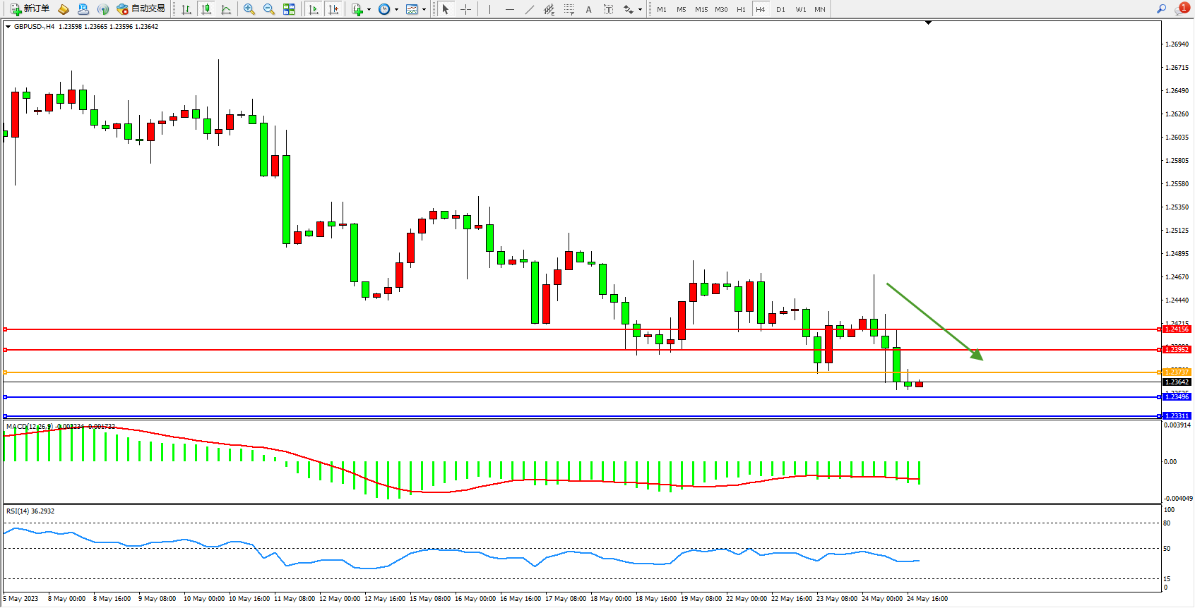 交易策略:1.23737下方看跌,目标1.23496  1.23311