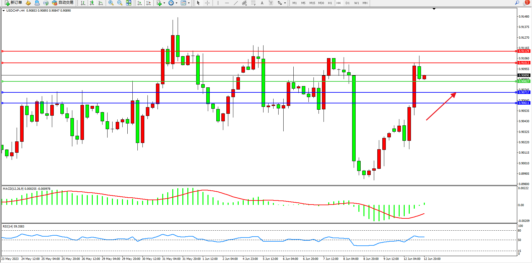 USDCHF:强势拉升 USDCHF  XAUUSD