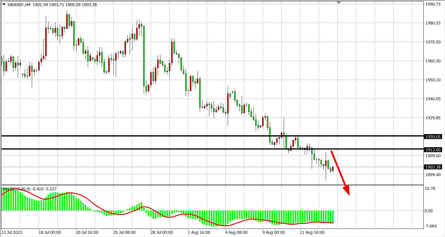 周二(8月15日)“恐怖数据”再证经济韧性,现货黄金短线急跌至1900关口下方