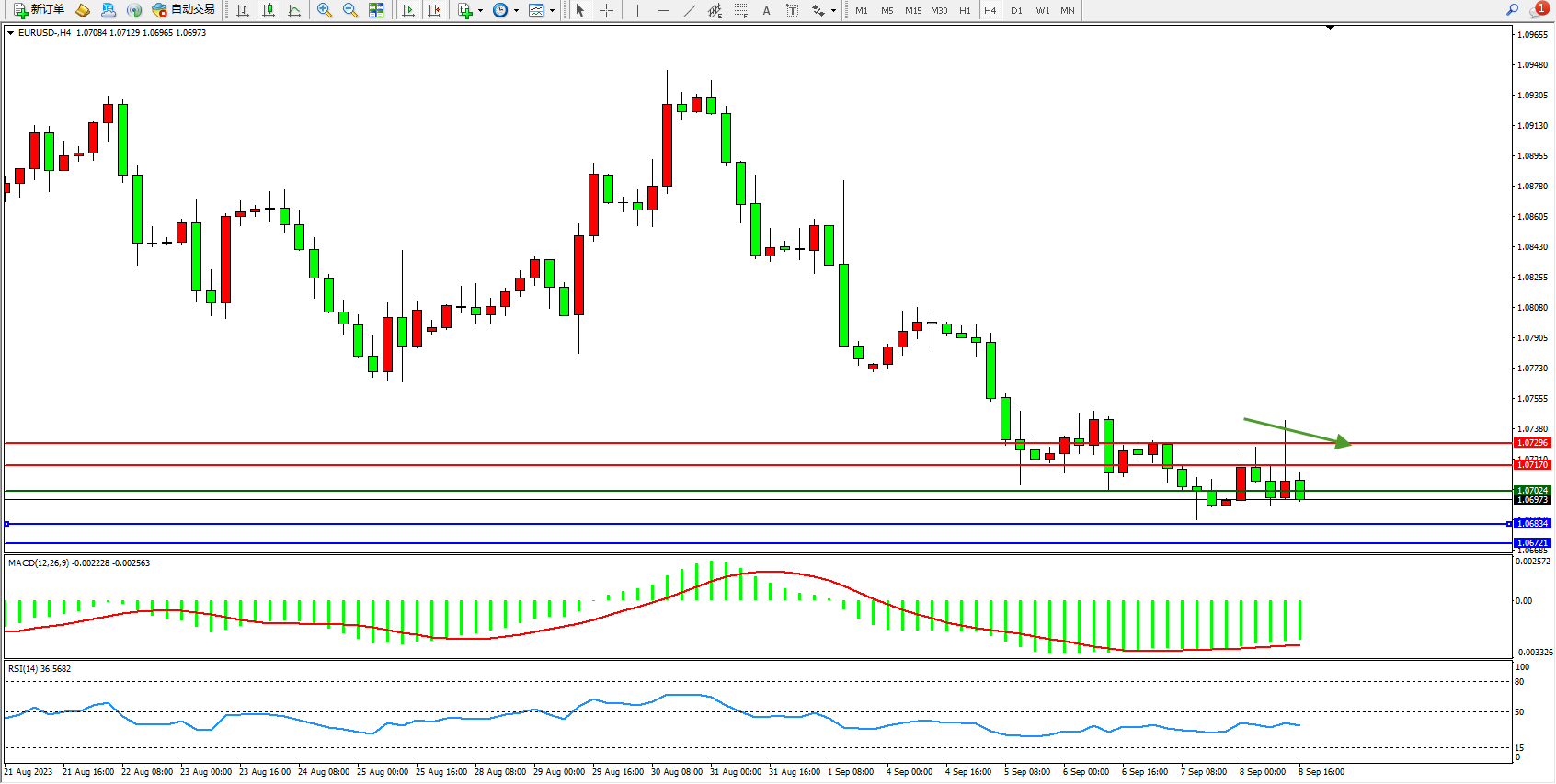 交易策略:1.07024下方看跌,目标1.06834  1.06721