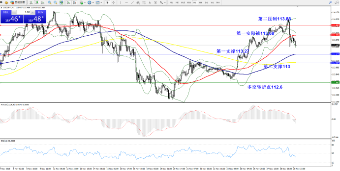 压制位:第一压制113.68;第二压制113.88;