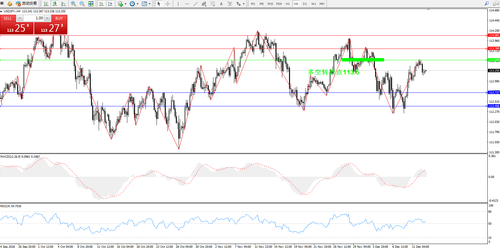 交易策略:113.5上方看涨,目标113.769114.083