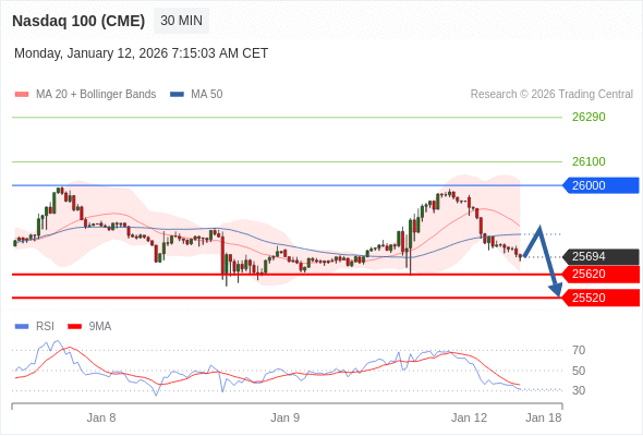 在 26000 之下,看跌,目标价位为 25620 ,然后为 25520 。