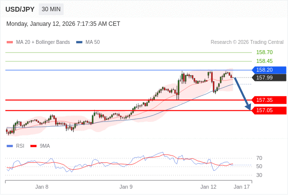 交易策略: 在 158.20 之下,看跌,目标价位为 157.35 ,然后为 157.05 。
