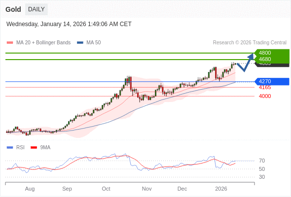 在 4270 之上,看涨,目标价位为 4680 ,然后为 4800 。